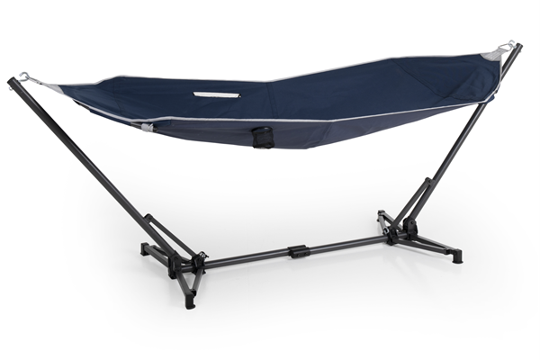 En skön och praktisk hängmatta som utlovar lata stunder i solen eller skuggan. Den portabla ställningen gör att du enkelt kan placera din hängmatta på den för tillfället perfekta platsen. Mattan har praktiska fack för ipad/bok och burkhållare samt levereras i en snygg bärbag. Mattan är godkänd för 150 kg.