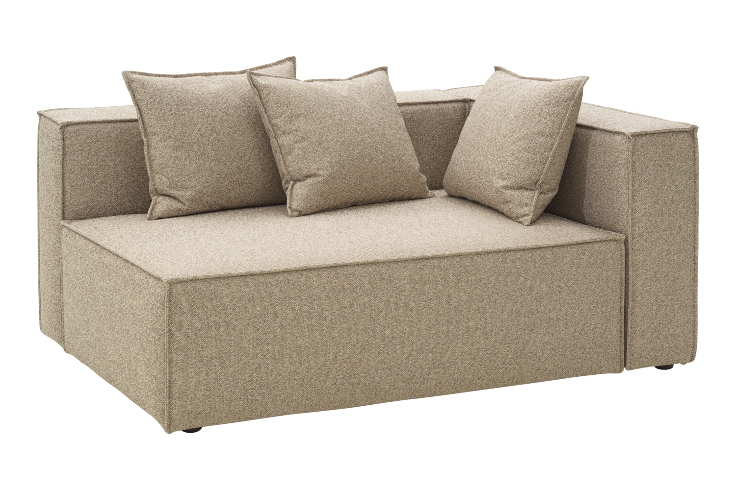 Slitstarkt tyg med TPU-liner skyddar mot sol och fukt, medan mjuk stoppning och fjädrad sits ger hög komfort. Tre lösa kuddar ingår per modul.