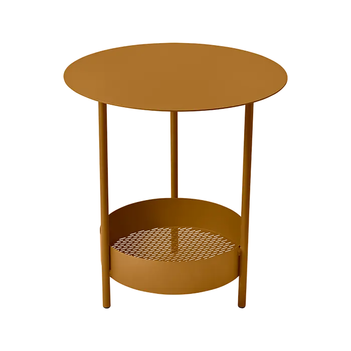 Salsa sidobord från Goula & Figuera kombinerar modernistisk design med en stilren, geometrisk form på tre ben. Det är ett lätt och stabilt bord som passar både ute och inne.