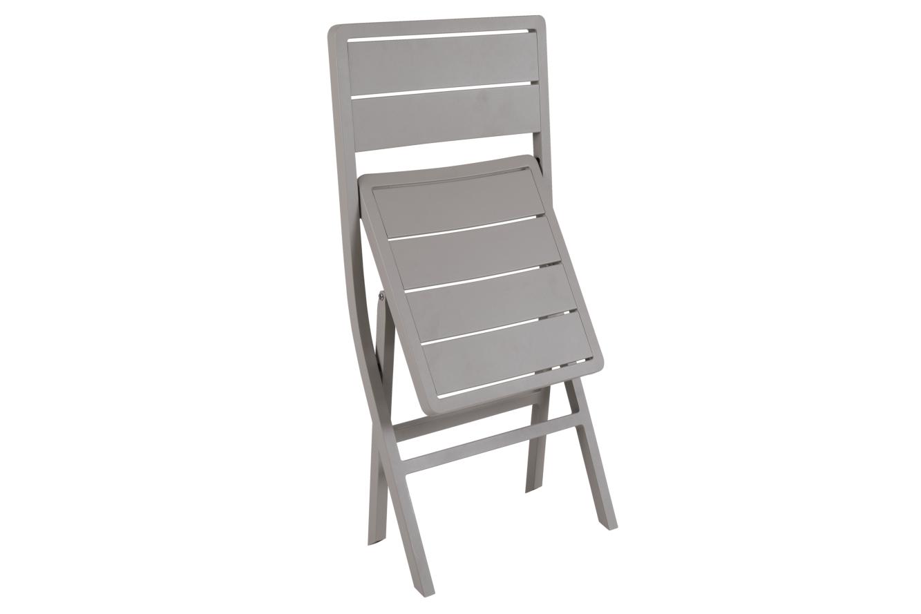 En smidig matstol i aluminium. Wilkie är hopfällbar, har fina linjer och små böjningar för att höja känslan.